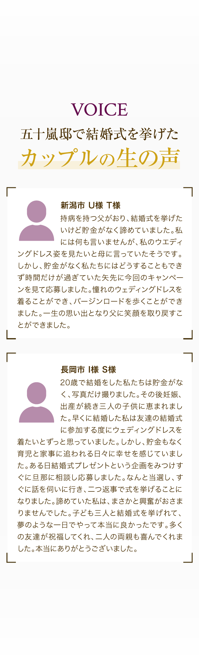 五十嵐邸 結を選ぶ理由として人気の一つなのが「おいしい料理」です。和会席と洋会席をご用意しており、おふたりの好みやゲストの方に配慮できるように。また、食材は厳選した新潟のものはもちろん、全国のおいしい食材を取り寄せ、最高においしいものをご提供できるようにしております。おふたりの大切なゲストを心からのおいしい料理で「おもてなし」いたします。